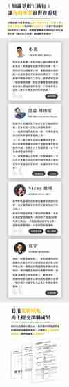 - 想經營個人品牌、自媒體以知識變現,正在籌備實體、線上課的新手講師。